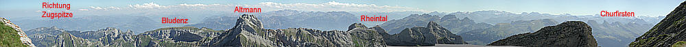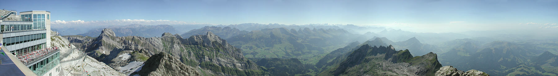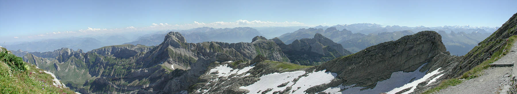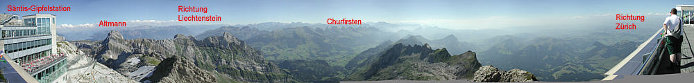 vorgelagert und wirkt so wie ein Wächter der Schweizer Alpen. Der Blick, den man vom Säntisgipfel hat ist atem- beraubend. Bodensee, Zürichsee, und die komplette Alpenkette von den bayerischen Bergen bis zu den