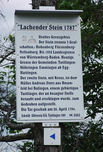 einem kleinen Kreuz an eine andere Bluttat, die an der Witthohstraße verübt wurde, an die Ermordung des 42jährigen Müllers Andreas Storz, gebürtig aus Tuttlingen, wohnhaft in Rosenfeld. Sein Vater war der